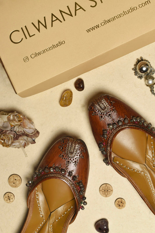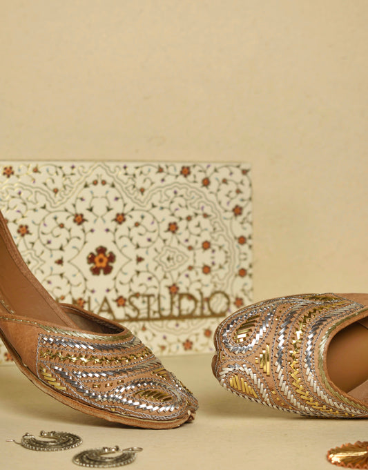 أُوكَازيُونSilver And Golden Pitta Almond Jutti