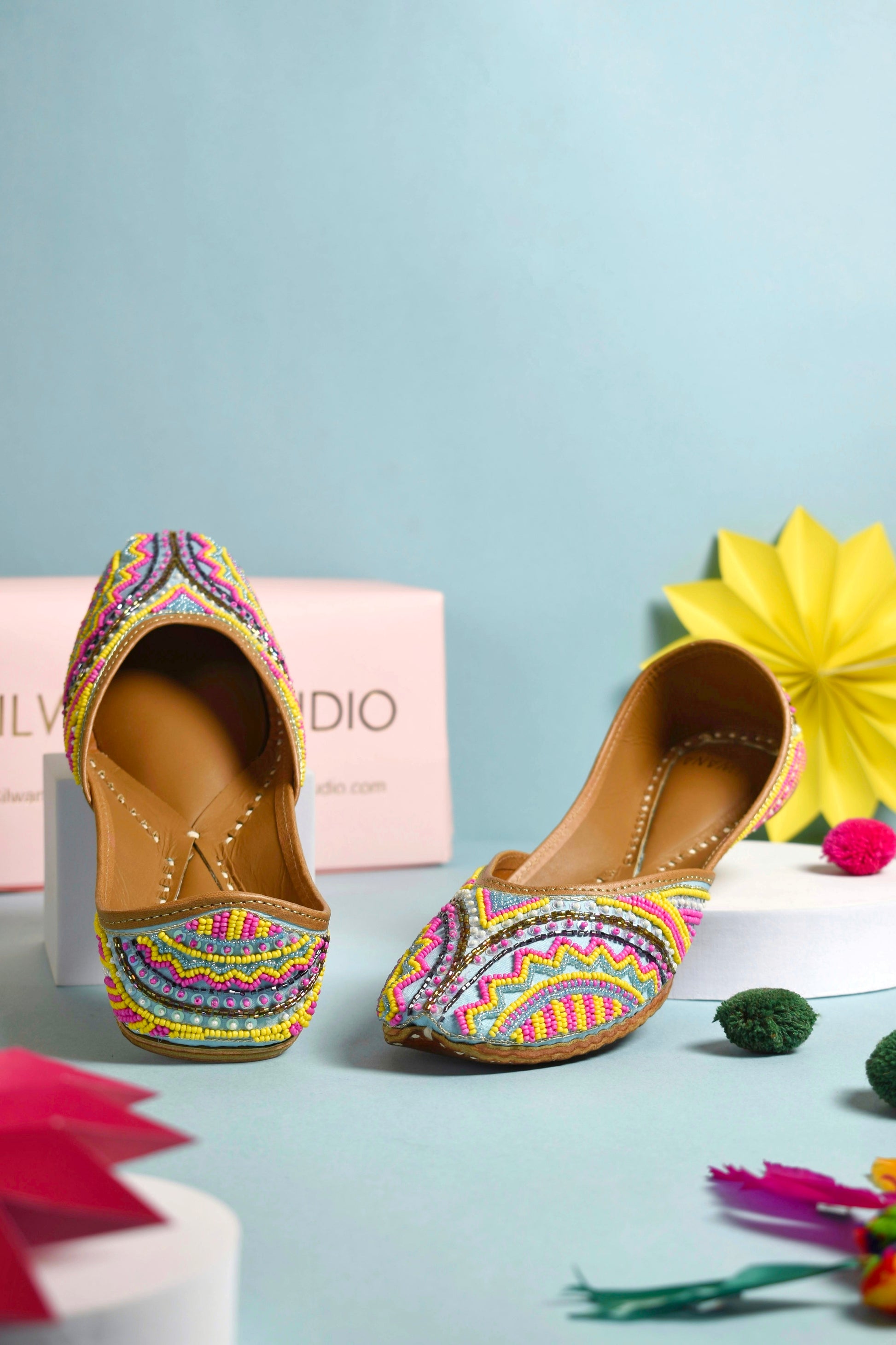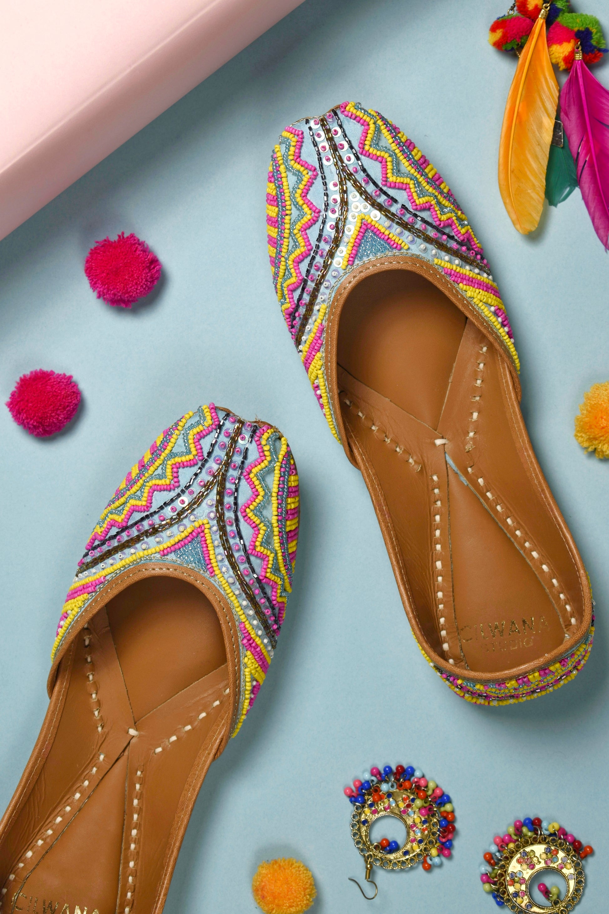 Indulge in luxury and tradition with our handmade double cushioned leather juttis adorned with exquisite work. Crafted with meticulous attention to detail, each pair seamlessly blends elegance and comfort. Elevate your ensemble with timeless style and unparalleled craftsmanship.