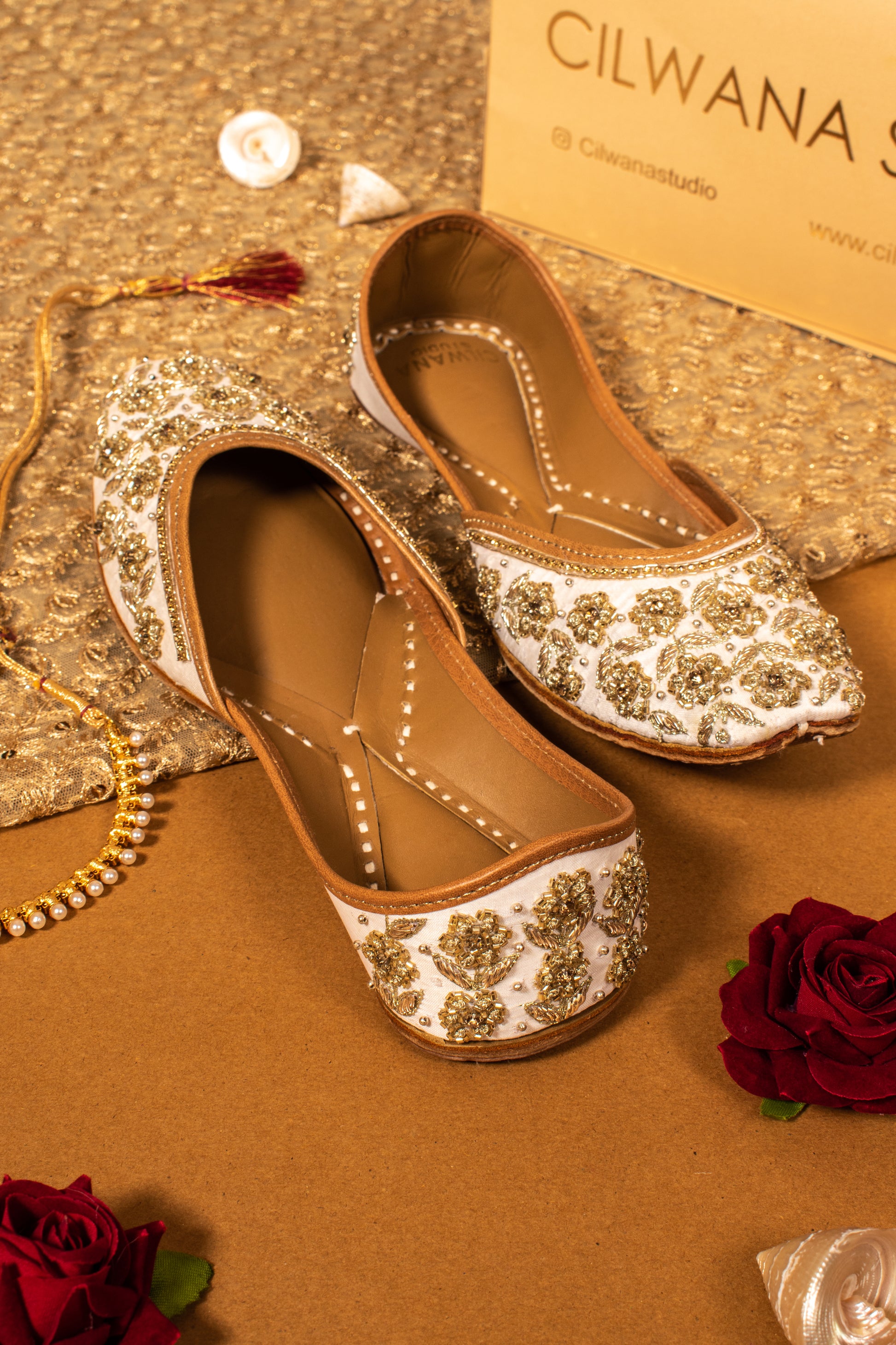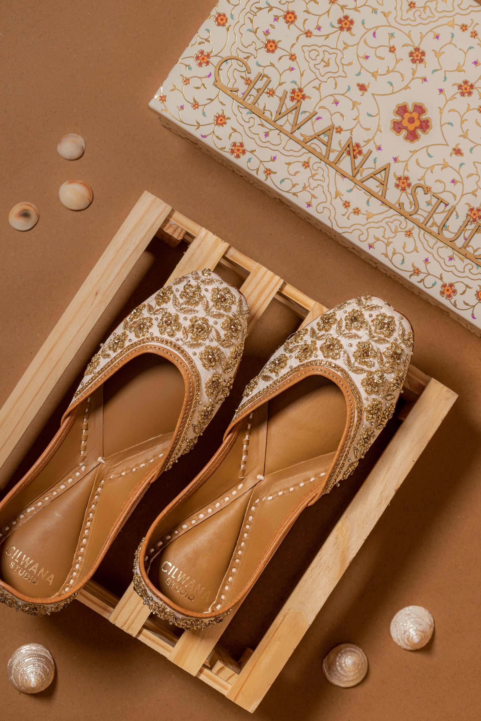 Indulge in luxury and tradition with our handmade double cushioned leather juttis adorned with exquisite work. Crafted with meticulous attention to detail, each pair seamlessly blends elegance and comfort. Elevate your ensemble with timeless style and unparalleled craftsmanship.